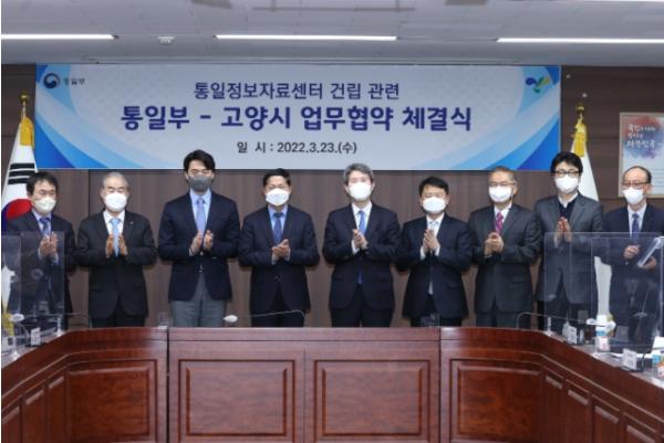 [뉴스시선집중, 박동혁기자] 고양시가 지난 23일 정부서울청사 통일부 대회의실에서 ‘통일정보자료센터’의 원활한 고양시 이전?건립을 위한 양 기관간 상호협력 업무협약(MOU)을 체결했다.