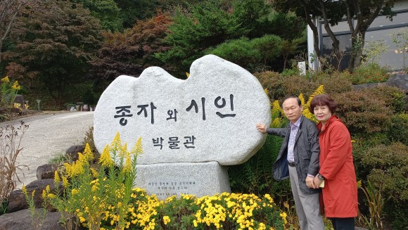 양떼구름을 볼 수 있는 가을 하늘, 단풍이 드는 계절에 필자의 시비(詩碑)가 있는 경기도 연천군 종자와 시인박물관을 갔다. 신광순 관장의 따뜻한 안내에 반갑고 정겨웠다. 박물관 내 일본 북해도에서 가져온 씨앗으로 성장한 노오란 꽃들이 참 아름다웠다. 국내에 씨앗 박사로 알려진 종자계의 거목이다. 우리가 먹는 채소 중 신광순 회장<(주)신농> 회사의 씨앗을 사용 안 하는 농장이 별로 없다.