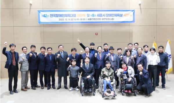 세종특별자치시장애인체육회는 9일 정부세종컨벤션센터 중연회장에서 선수, 감독 등 120여 명이 참석한 가운데 ‘제42회 전국장애인체육대회 세종시 선수단 해단식’과 ‘제9회 세종시 장애인 체육상 시상식’을 진행했다.