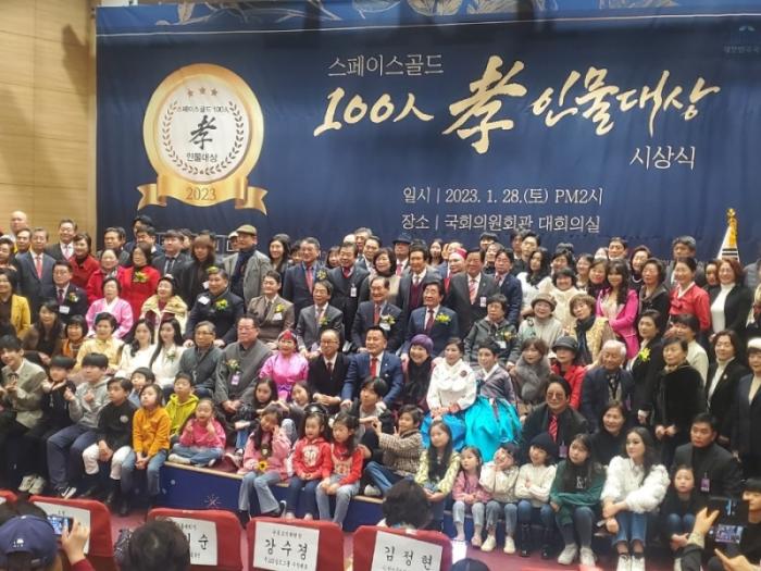 [뉴스시선집중 조기홍 기자]스페이스 골드 100인 효 인물 대상 시상식이 2023년1월28일(토요일)2시 국회의원 회관 대회의실에서 개최됐다.