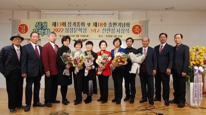 [뉴스시선집중 조기홍 기자]18일 천복궁에서 심정문학회 제13회 정기총회 및 심정문학 18호 출판기념식과 2022년 심정문학상 그리고 신인상 시상식을 개최했다.